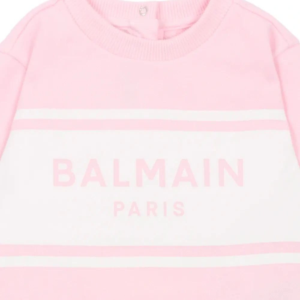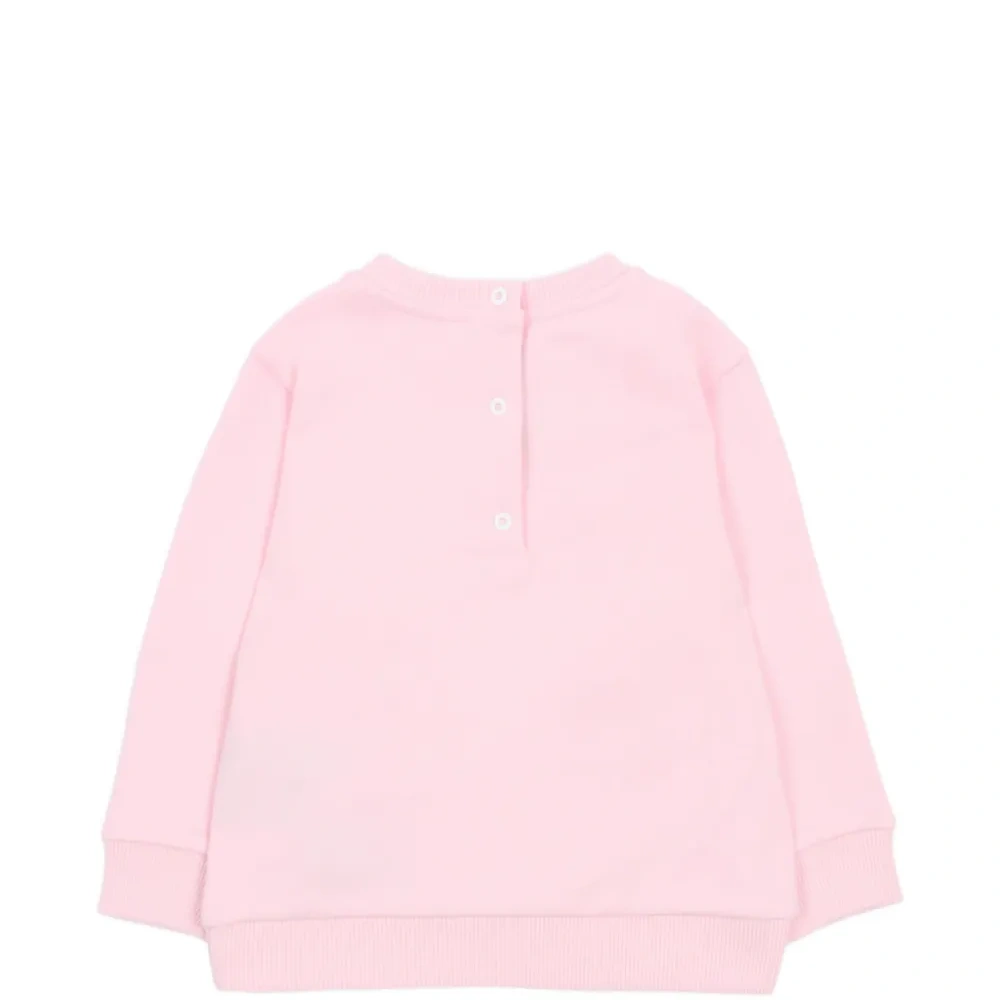 розовый свитшот с графическим принтом, круглый вырез, застежка на пуговицы сзади, длинные рукава, ребристый край
