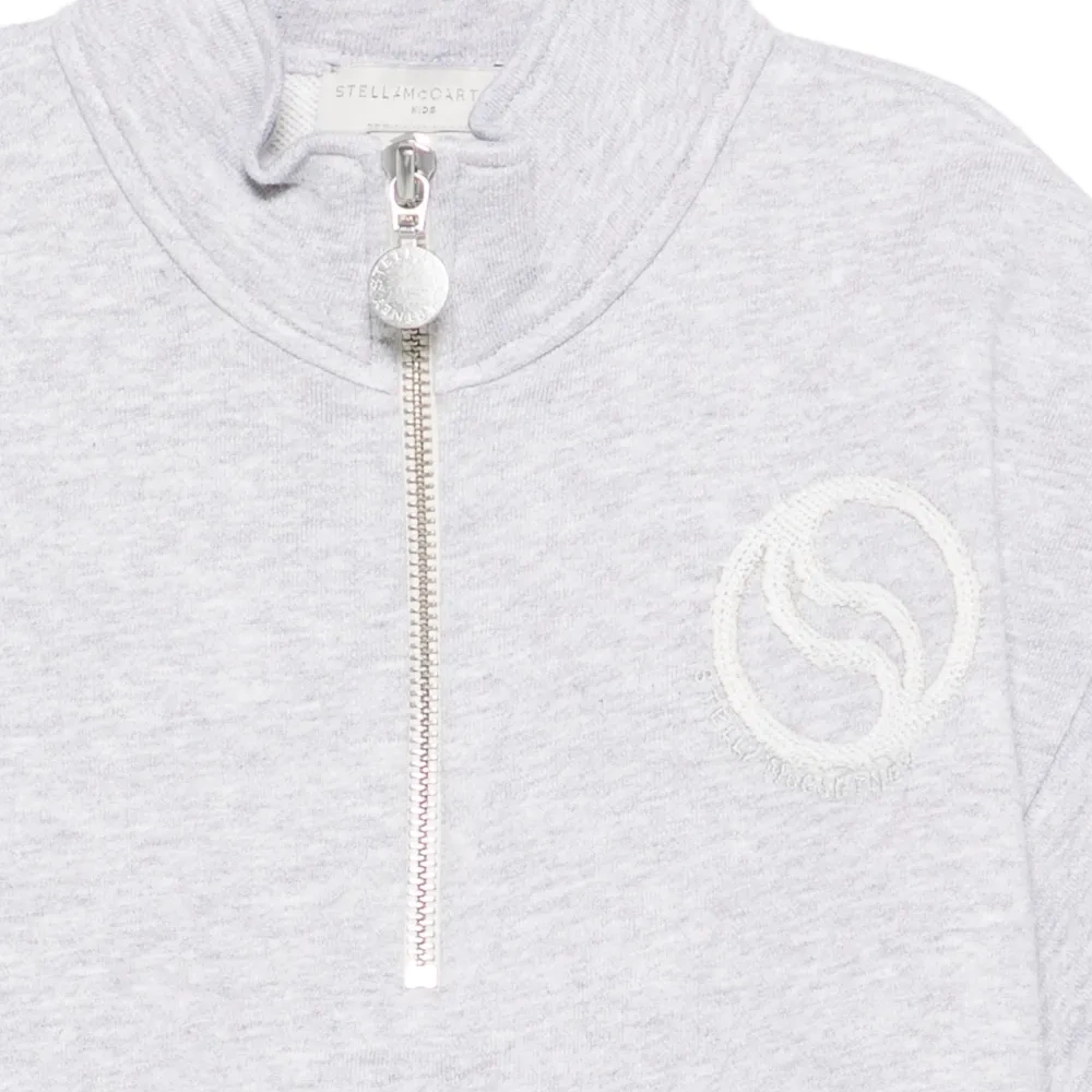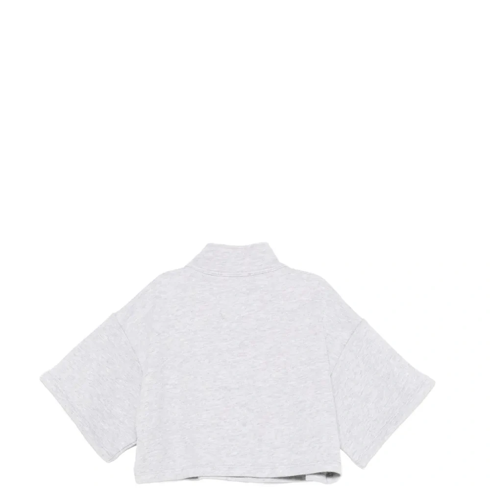 светло-серый укороченный топ с застежкой-молнией, высоким воротником и нашивкой с логотипом