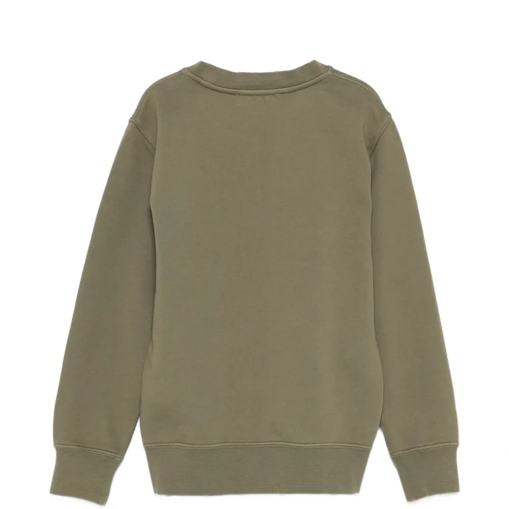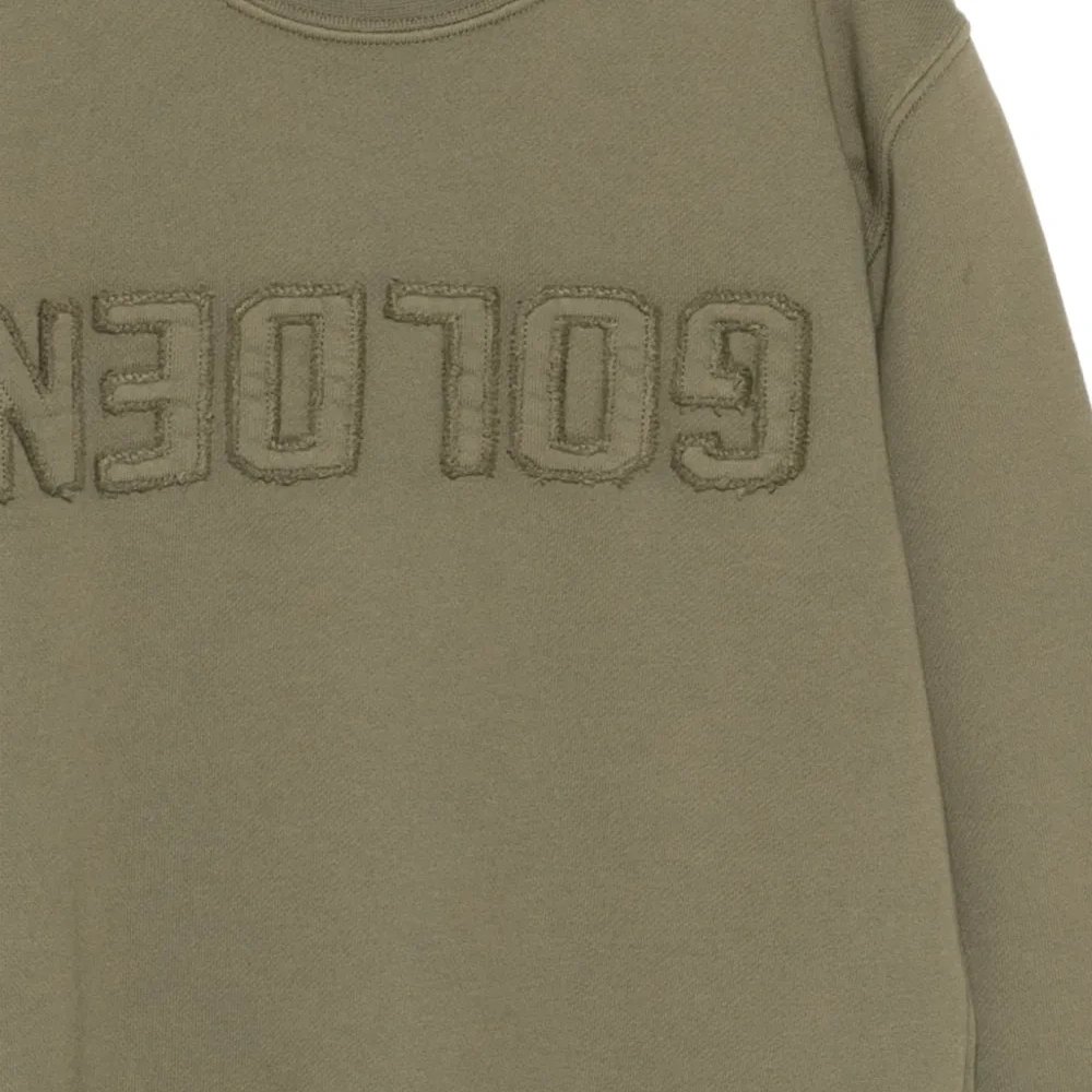 оливково-зеленый, нашивка с логотипом, круглый вырез, длинные рукава, ребристые манжеты и низ