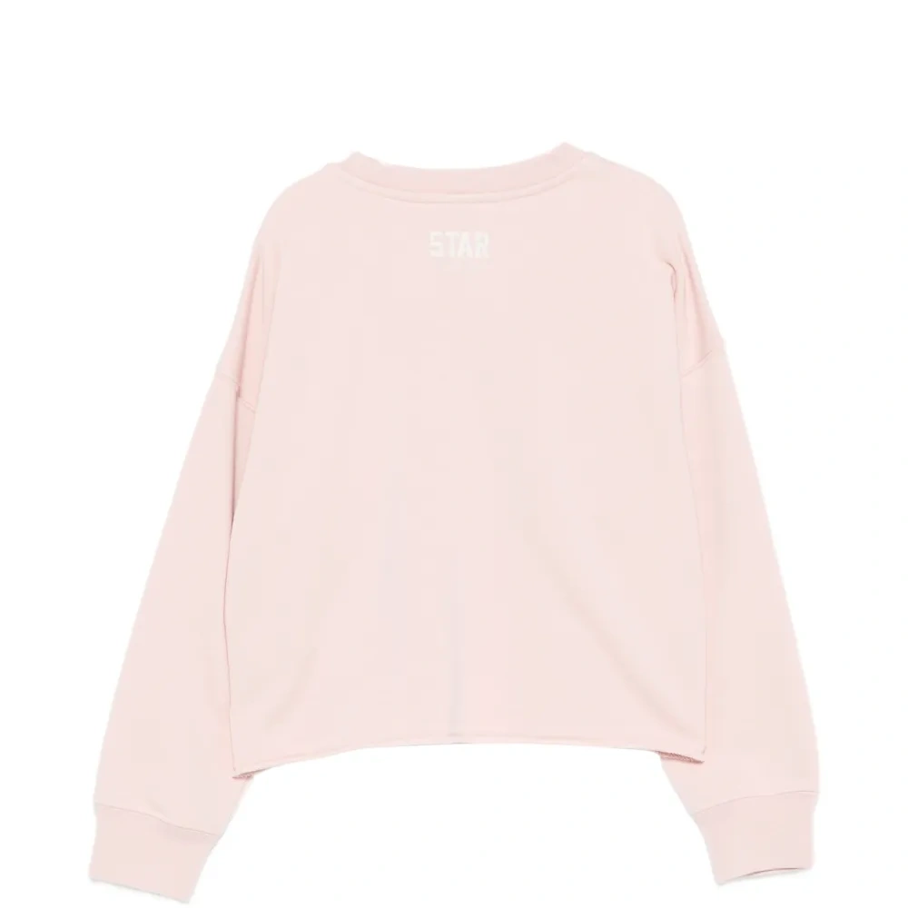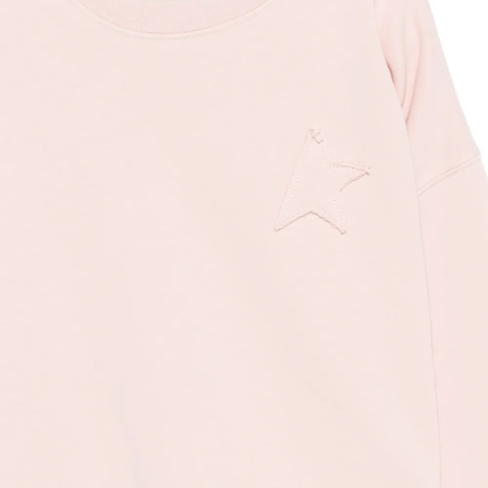 розовый свитер с круглым вырезом, длинными рукавами, ребристыми манжетами и аппликацией в виде звезды