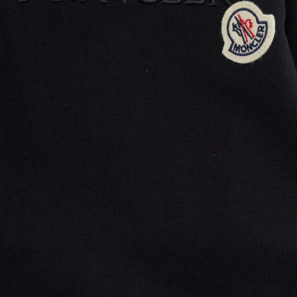 черный свитер с вышитым логотипом, ребристым подолом и длинными рукавами