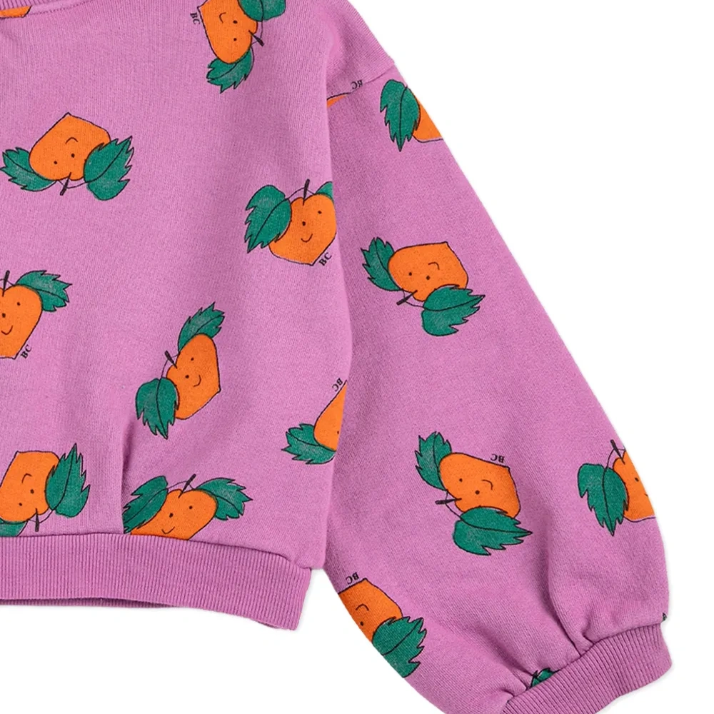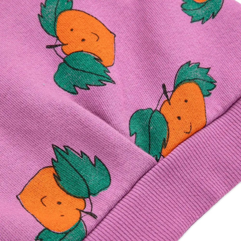 фиолетовый свитшот с графическим принтом, круглым вырезом, длинными рукавами, эластичными манжетами и поясом