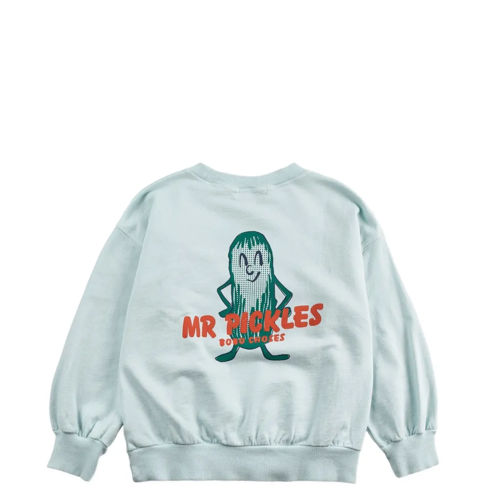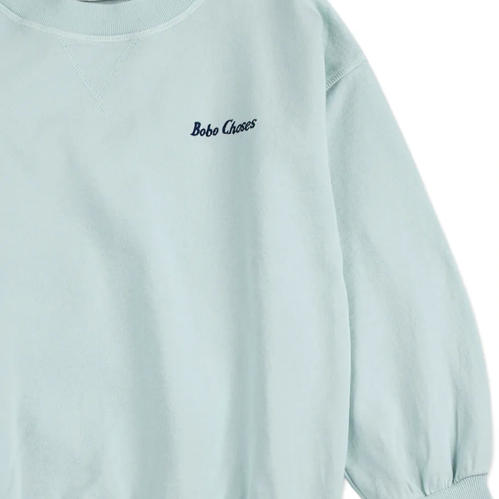 аквамариново-голубой цвет, графический принт сзади, длинные рукава, круглый вырез, ребристые манжеты и низ