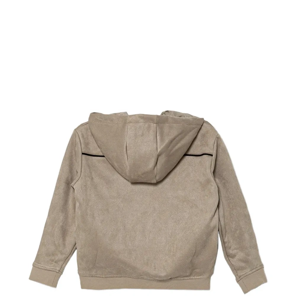 светло-серый, застежка-молния спереди, передние карманы, длинные рукава, капюшон, полосатая отделка