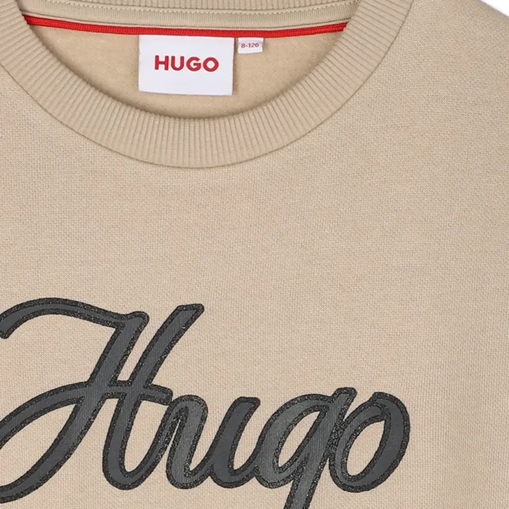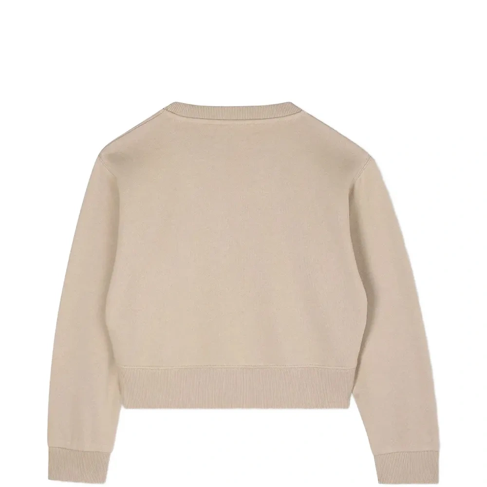 светло-коричневый джемпер с логотипом, круглым вырезом, длинными рукавами, застежкой на пуговицы сбоку и ребристой отделкой