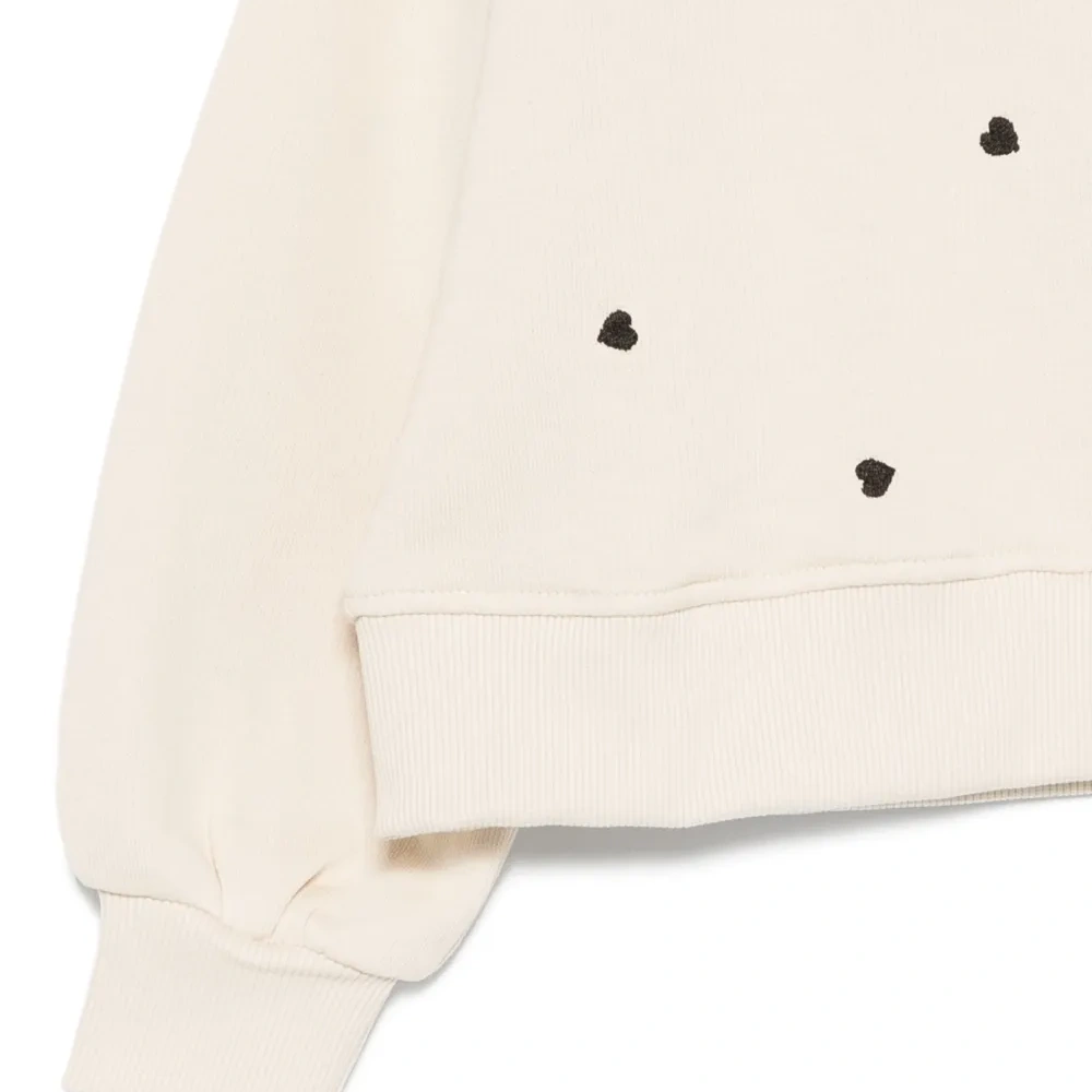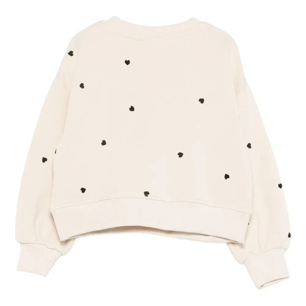 кремовый свитер с сердечком, ребристый низ, ребристые манжеты, круглый вырез, длинные рукава