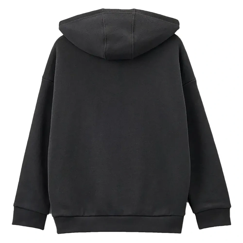 тёмно-серый худи с передним карманом-кенгуру, длинными рукавами, трикотажной резинкой по низу и манжетам