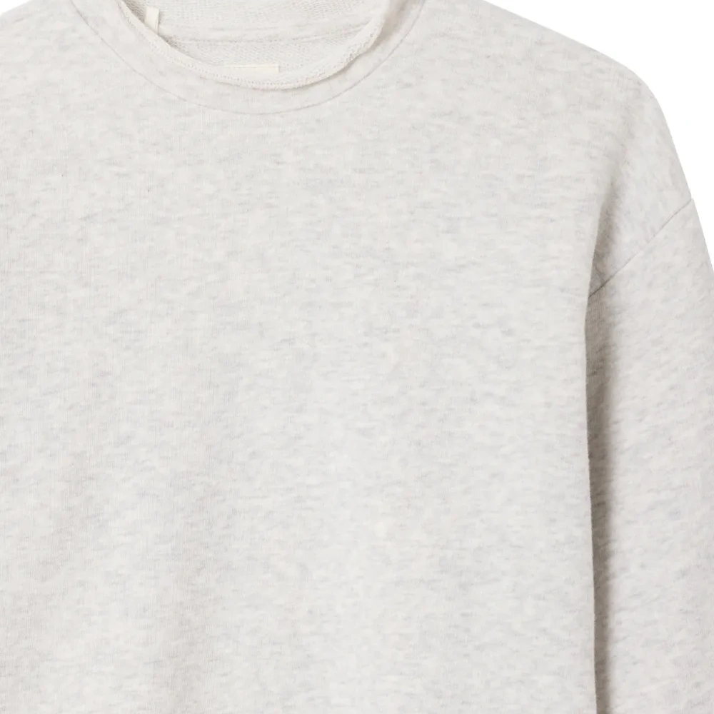 светло-серый свитер с круглым вырезом и длинными рукавами