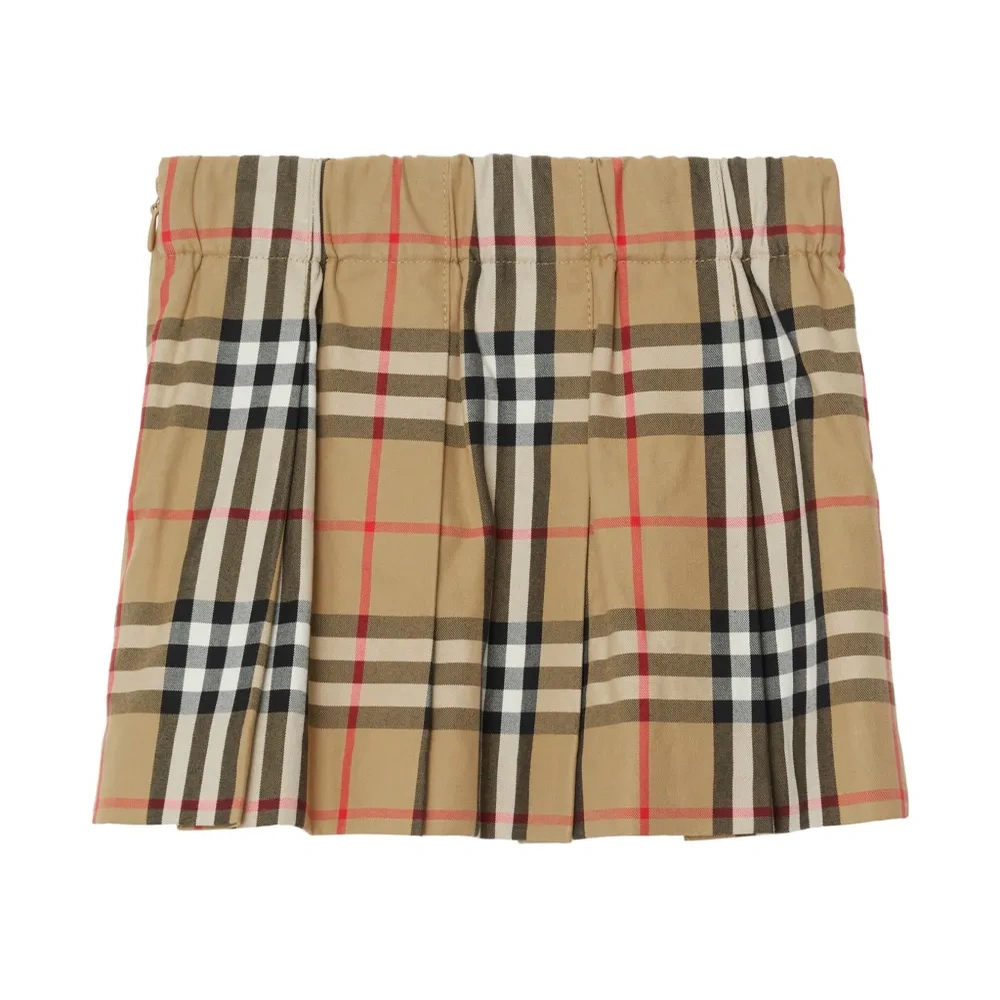 Винтажный бежевый, разноцветный, хлопок, клетчатый узор, складки, А-образный силуэт, эластичный пояс, потайная застежка на молнии сбоку и прямой подол.