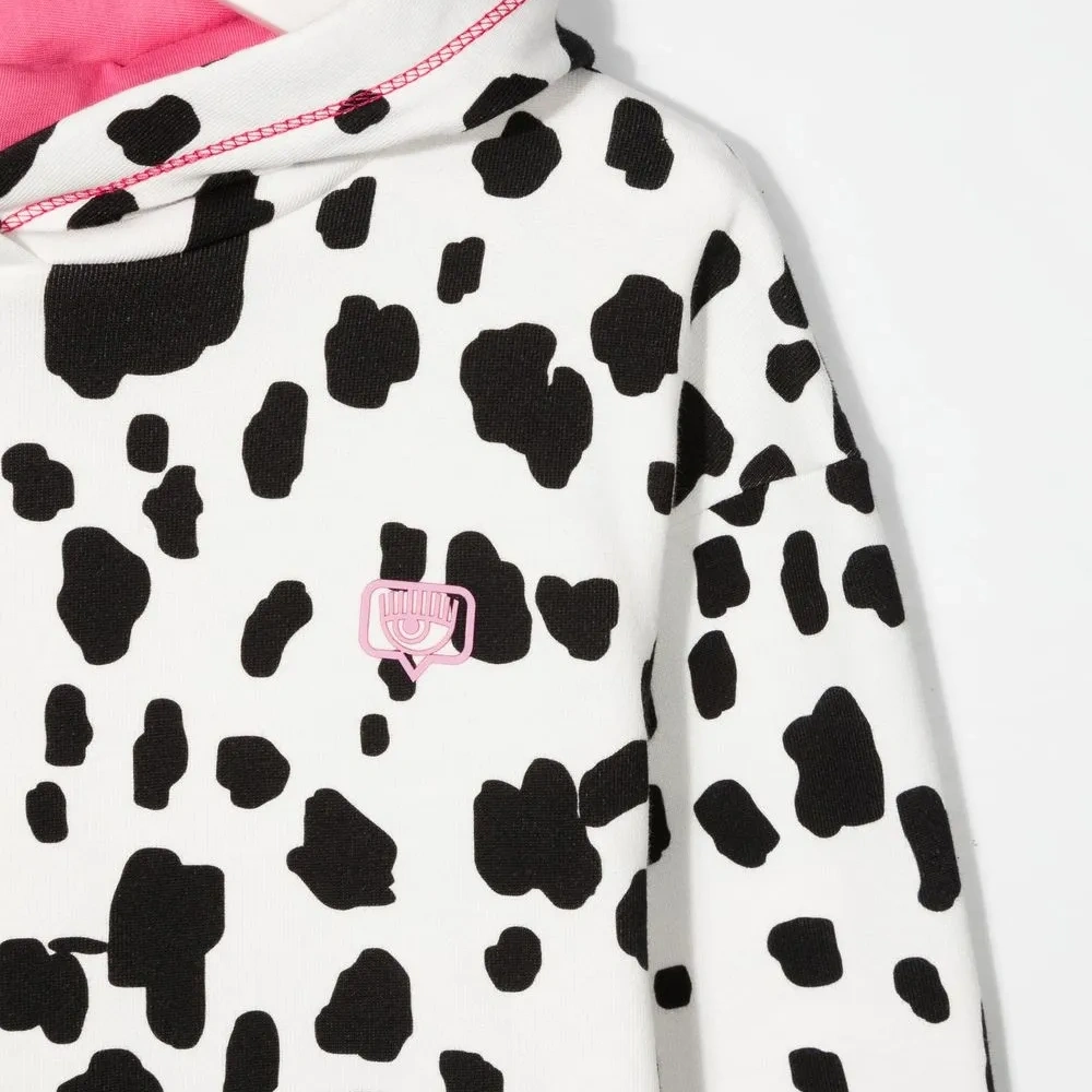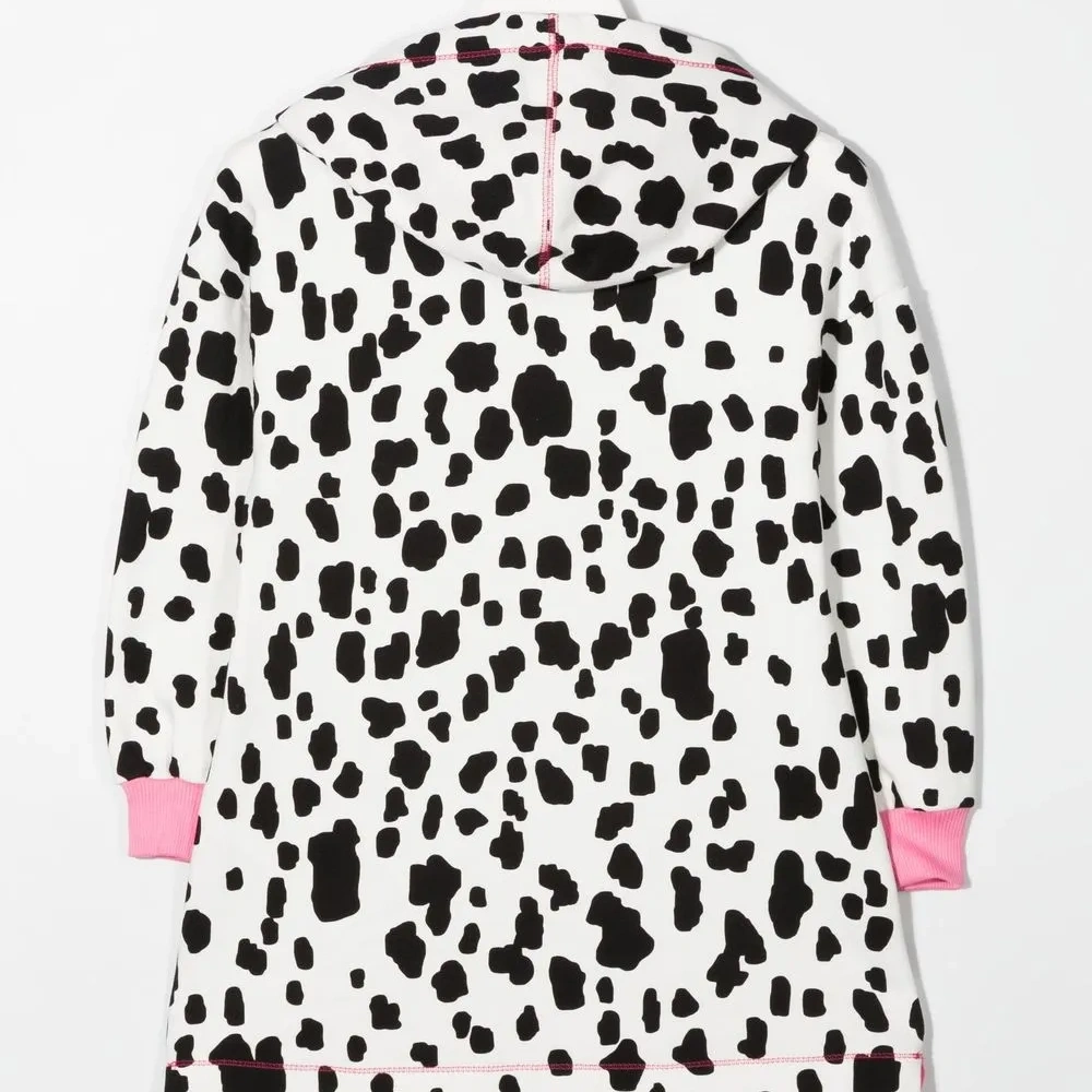 Черный/белый, хлопок, контрастные края, нашивка с логотипом на груди, анималистичный узор, классический капюшон, длинные рукава и неравномерный подол.