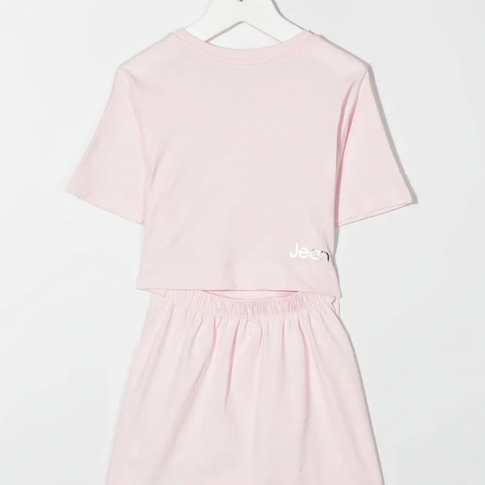 Розовый, расцветка Cloud White, хлопок, логотип спереди, круглый вырез, короткие рукава и прямой подол.