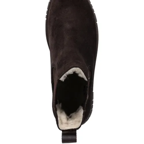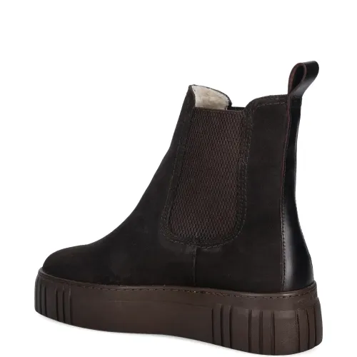 коричневые эластичные боковые вставки, петля сзади, платформа, ребристая подошва, круглый носок