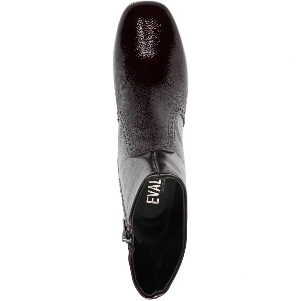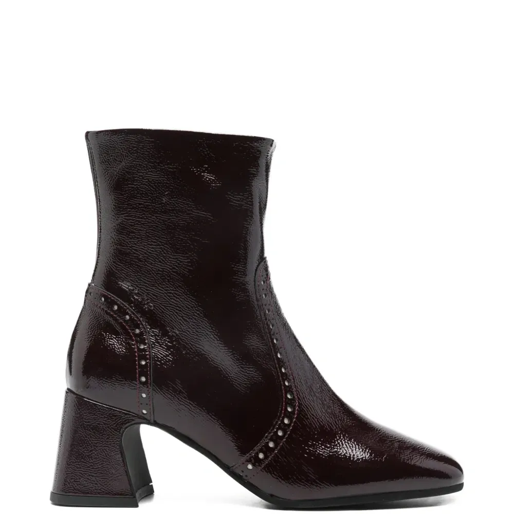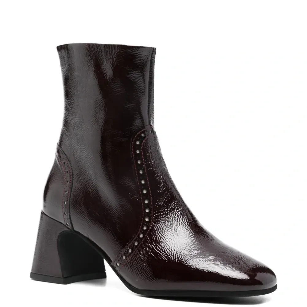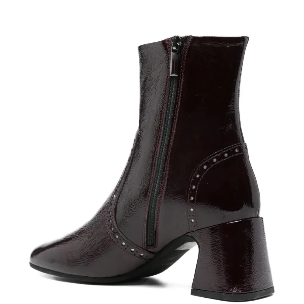 темно-красные туфли на толстом каблуке с отделкой заклепками, заостренным носком и застежкой-молнией