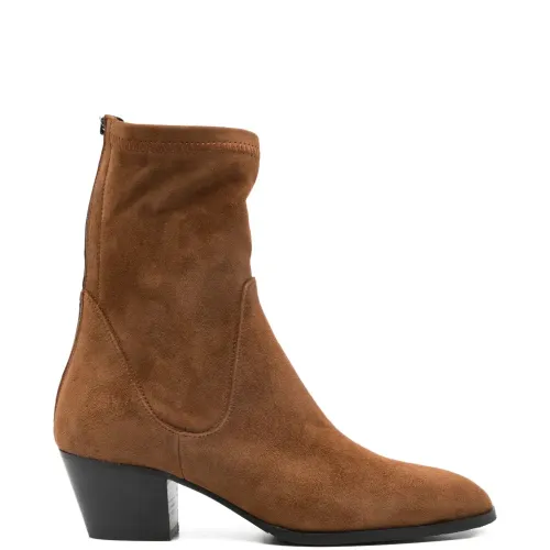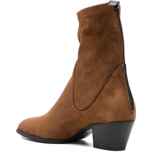 коричневый обувь на коническом каблуке с застежкой-молнией, заостренный носок, задняя молния