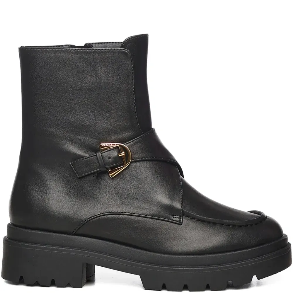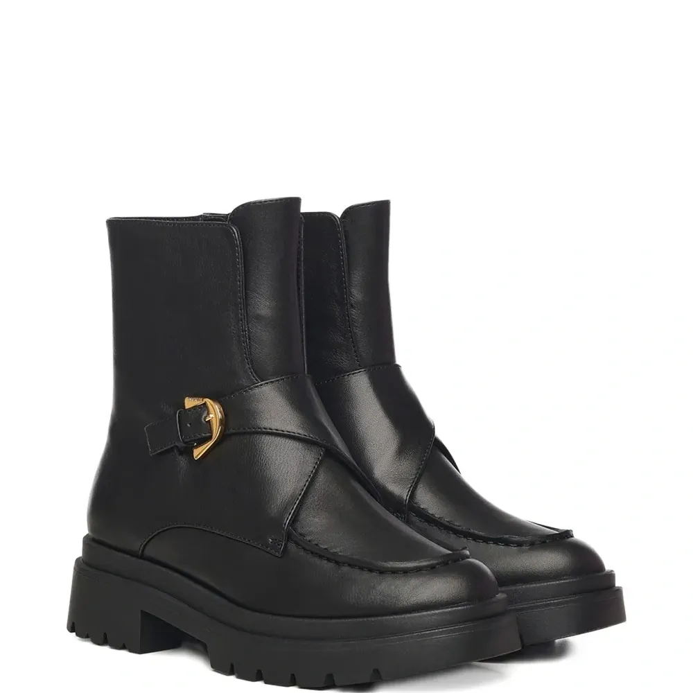 Кожаные сапоги с ремешком и пряжкой, каблук 35 мм