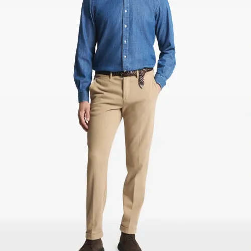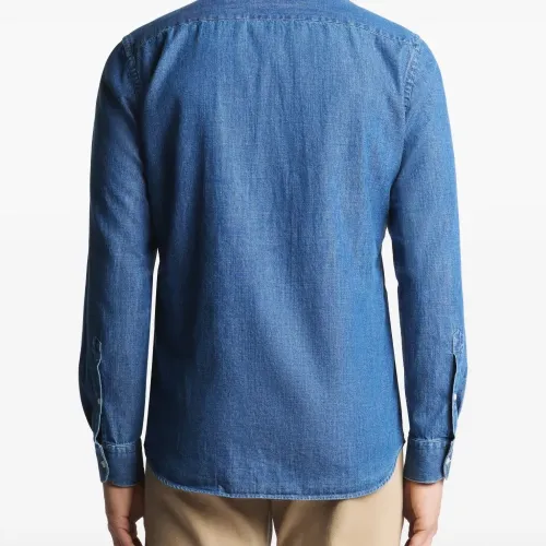 синий цвет, застежка на пуговицы, длинные рукава, манжеты на пуговицах, логотип