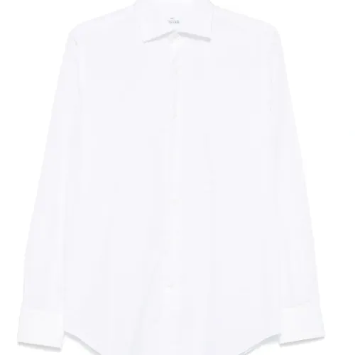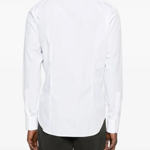белый длинные рукава застежка на пуговицы спереди классический воротник закругленный подол классический крой