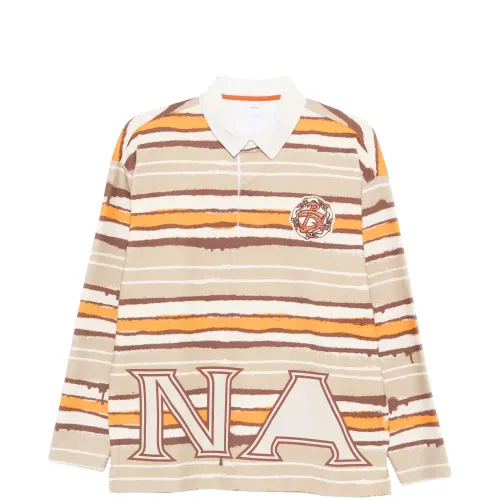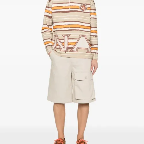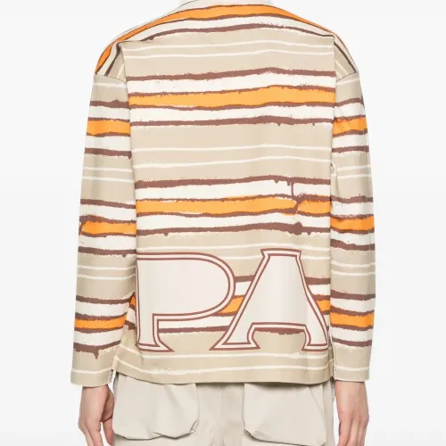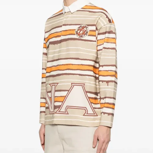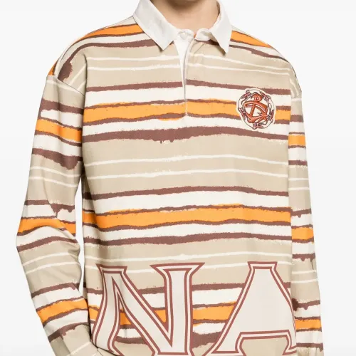 бежевый/разноцветный, хлопок, полосатый, нашивка с логотипом на груди, надпись с логотипом, планка на пуговицах, длинные рукава