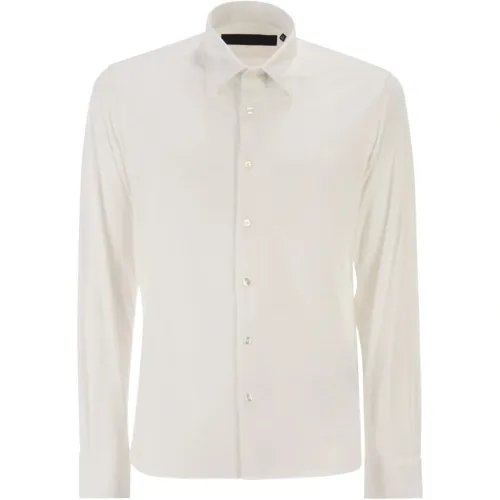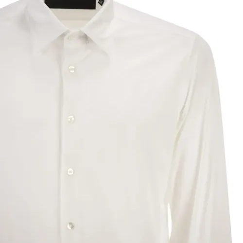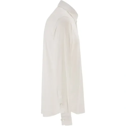 белая рубашка с застежкой на пуговицы и длинными рукавами