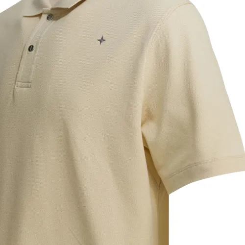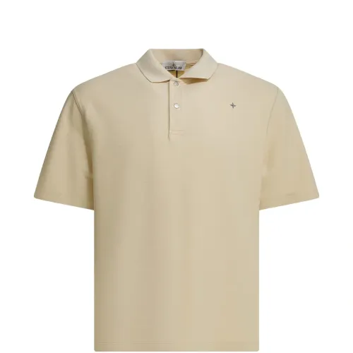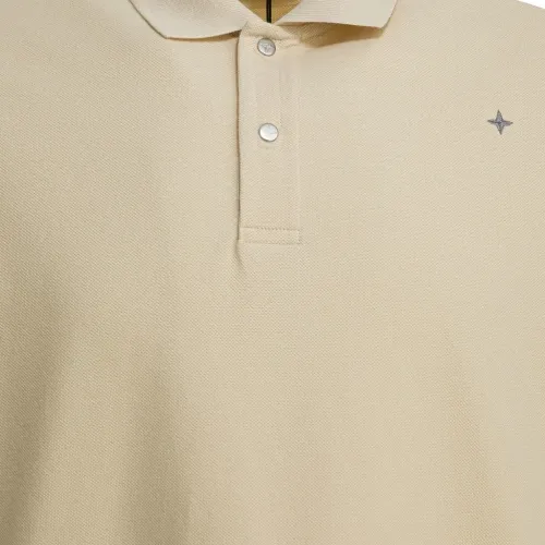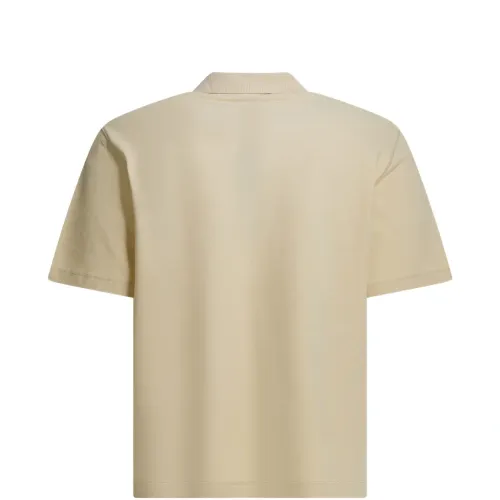 бежевый, с логотипом, застегивается на пуговицы, короткие рукава, хлопок