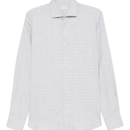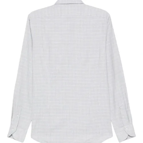 серый клетчатый узор застежка на пуговицах спереди длинные рукава манжеты на пуговицах