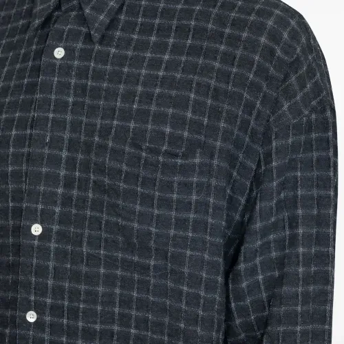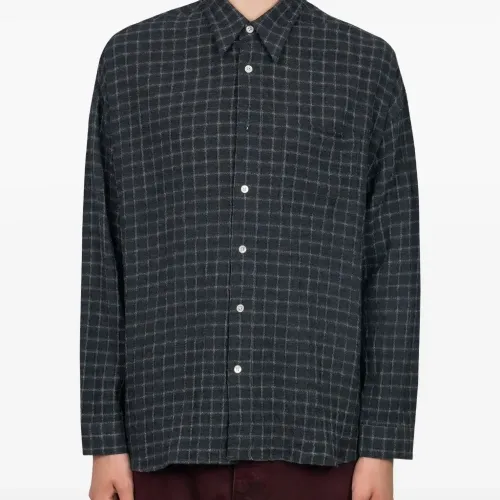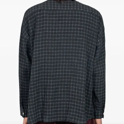 чёрный принт в виде клетчатой решётки длинные рукава застёжка на пуговицы спереди накладной карман на груди заострённый воротник