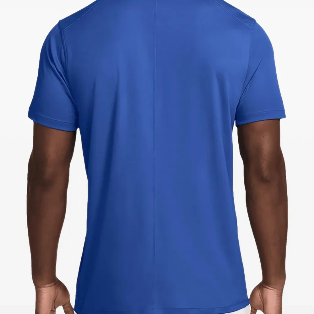 королевски-синяя футболка-поло с воротником, короткими рукавами и застежкой на пуговицы
