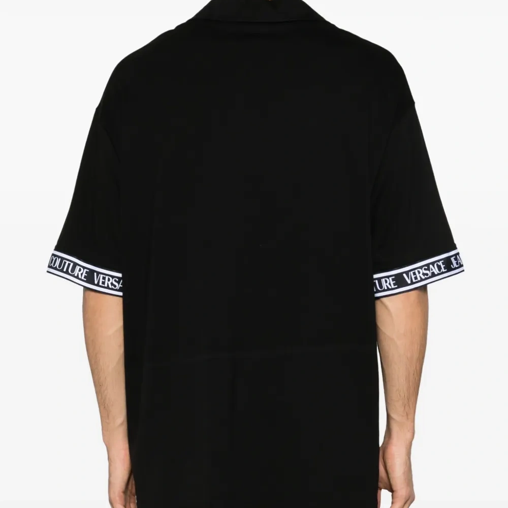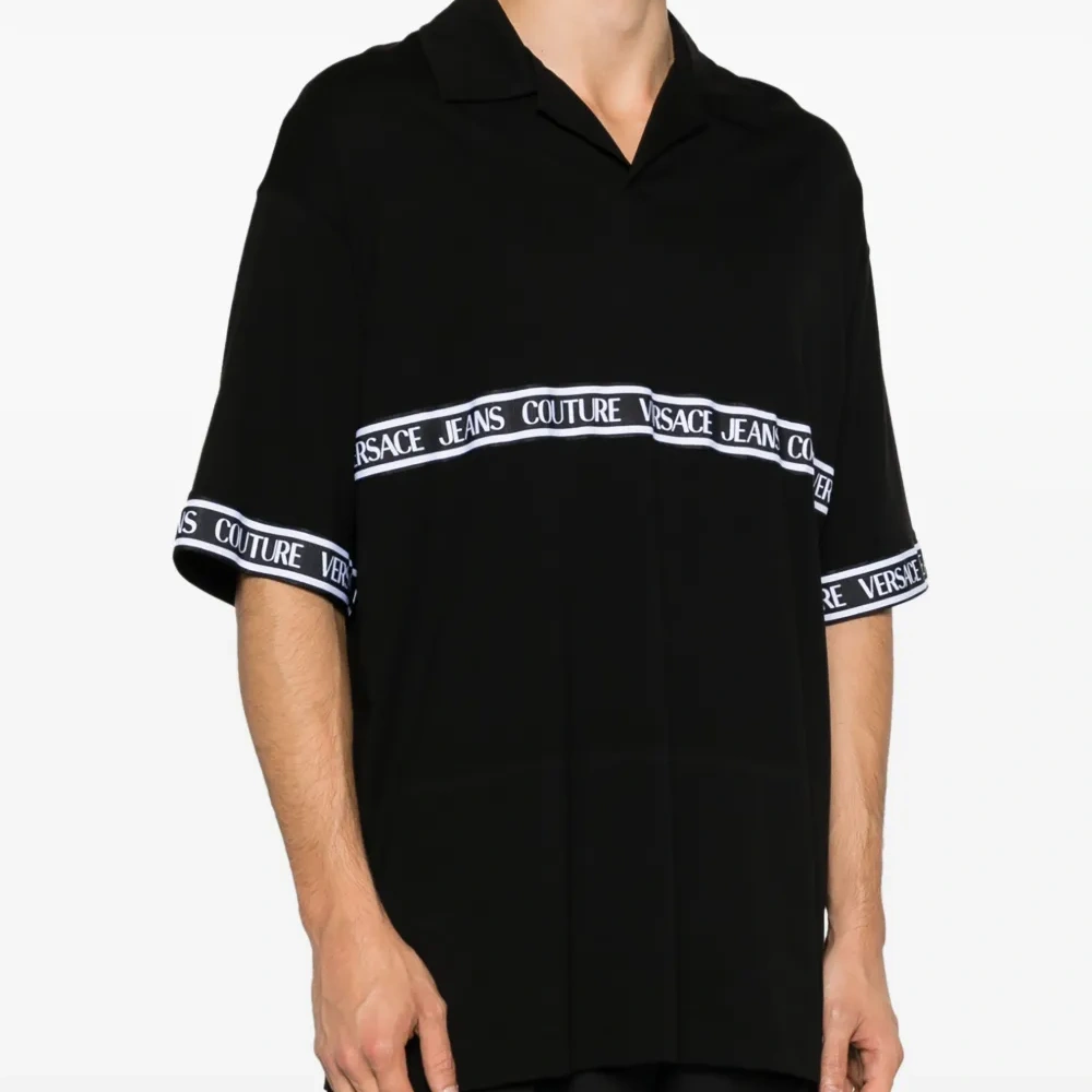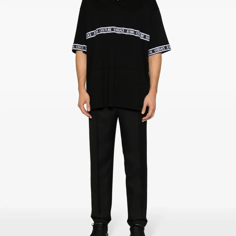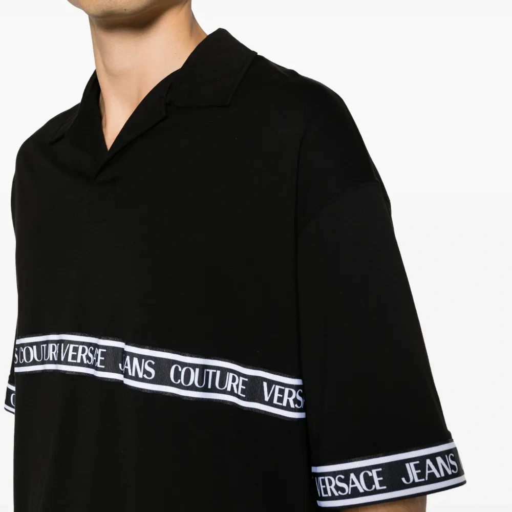 Воротник поло, логотип спереди, отделка лентой с логотипом и короткие рукава.