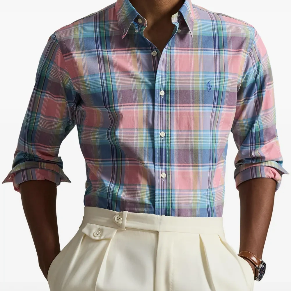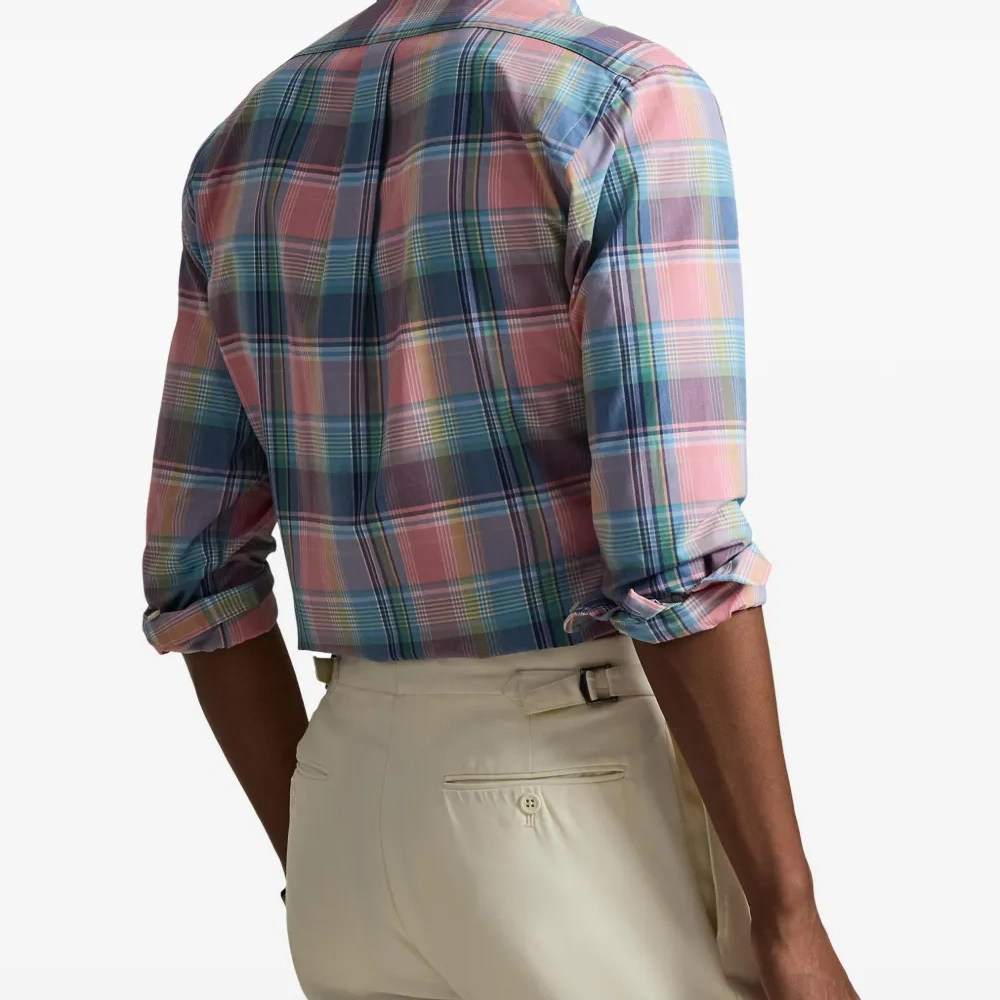 розовая и синяя рубашка в клетку с длинными рукавами и застежкой на пуговицы