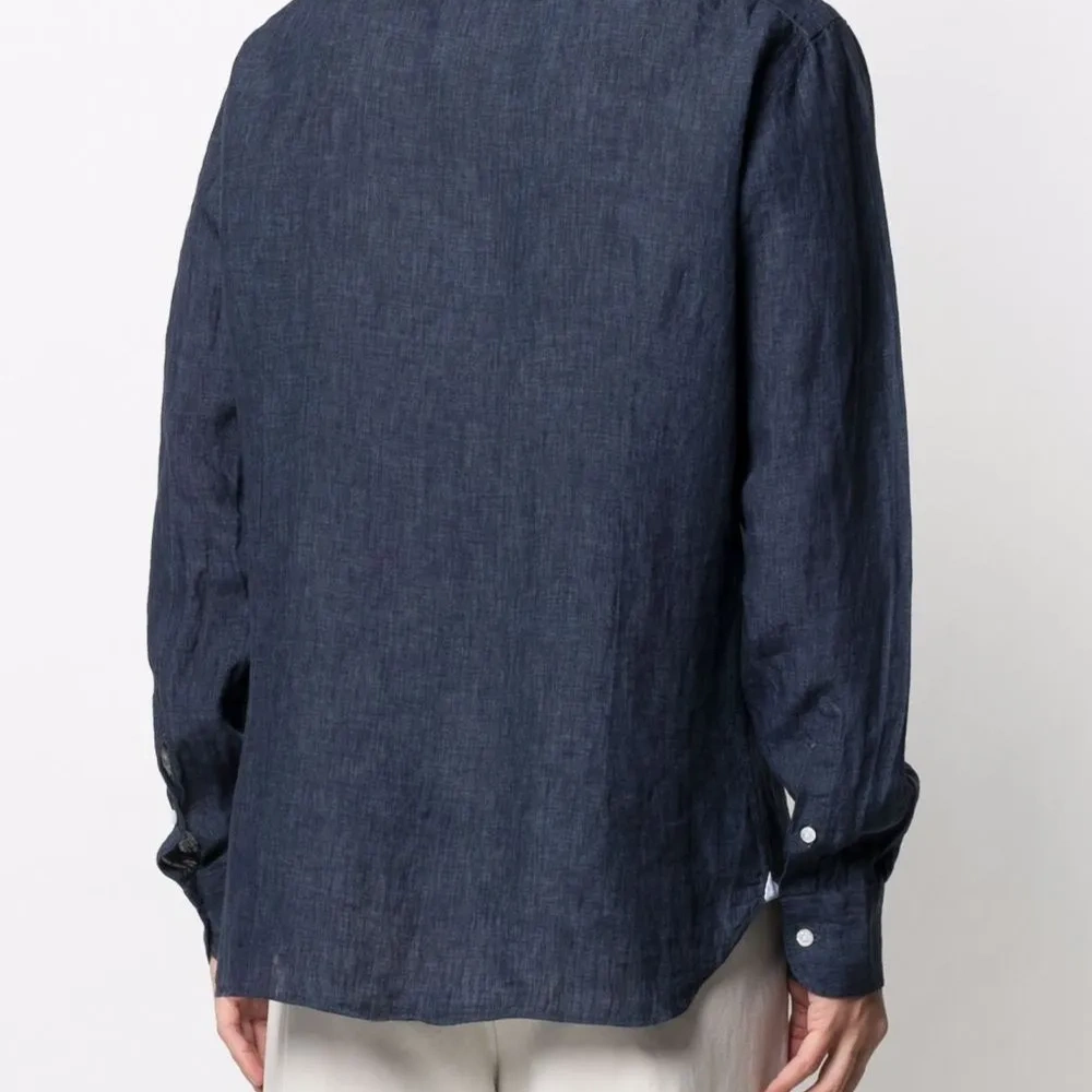Воротник-стойка, застежка на пуговицах спереди, длинные рукава, манжеты на пуговицах и закругленный подол. POSITIVELY CONSCIOUS: Как минимум 50% основного материала, из которого сделан этот товар, отвечает нашим критериям экологичности. В состав входят органические или переработанные материалы и ткани, которые признаны более экологичными (лен, рами, TENCEL™ и т.д.).
