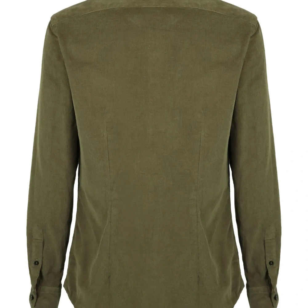 зелёная рубашка с классическим воротником, застёжкой на пуговицы, регулируемыми манжетами и длинными рукавами