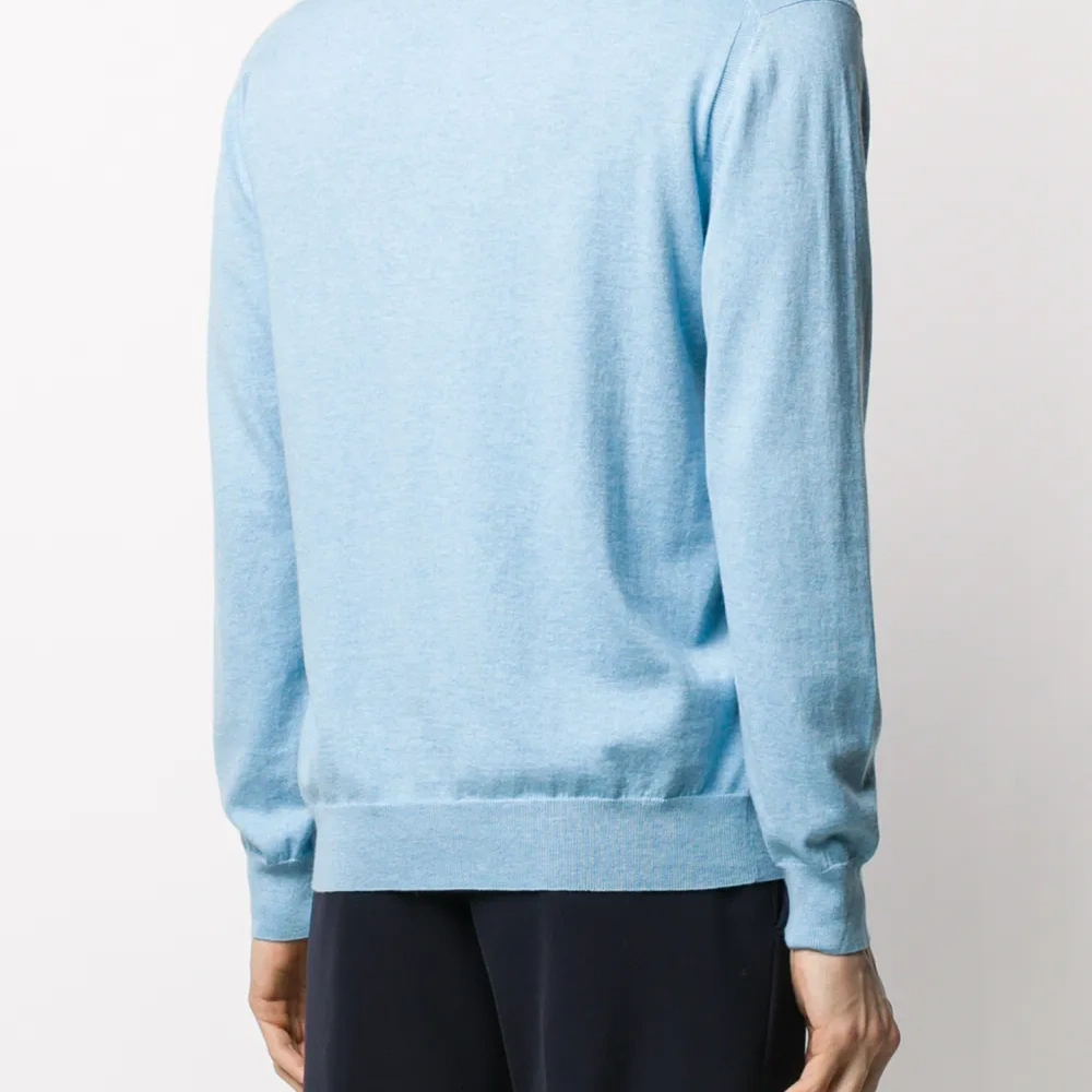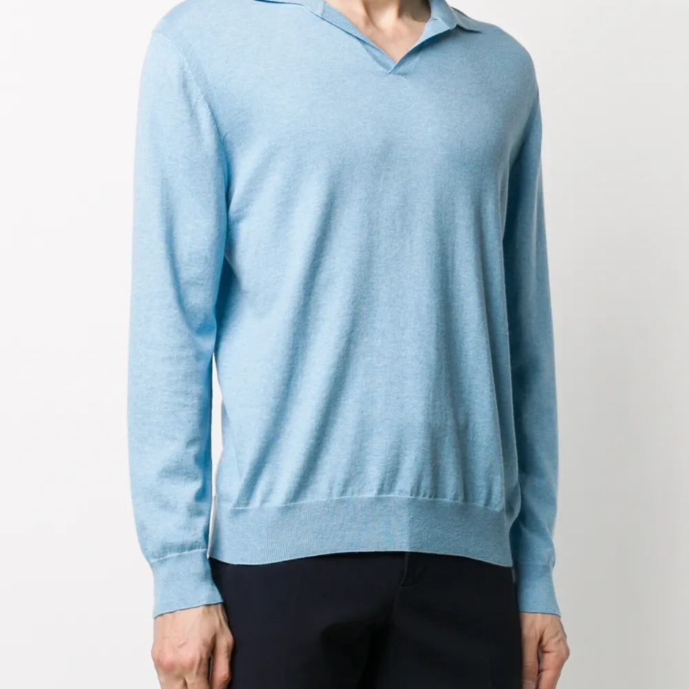 Рубашка-поло тонкой вязки от N.Peal. Открытый ворот, длинные рукава и подол и манжеты в рубчик.