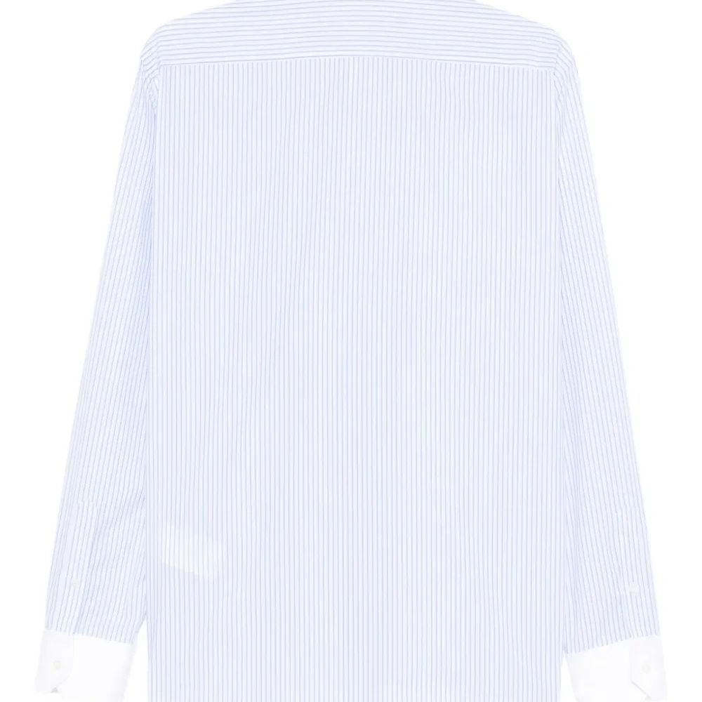 королевский синий и белый полосатый принт, застежка на пуговицы, манжеты на пуговицах, длинные рукава, классический воротник