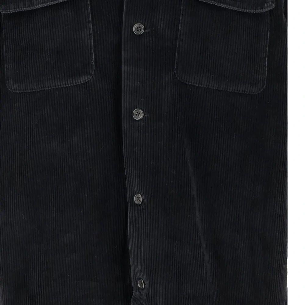 чёрная вельветовая фактура, застёжка на пуговицы, два нагрудных кармана, длинные рукава, отложной воротник