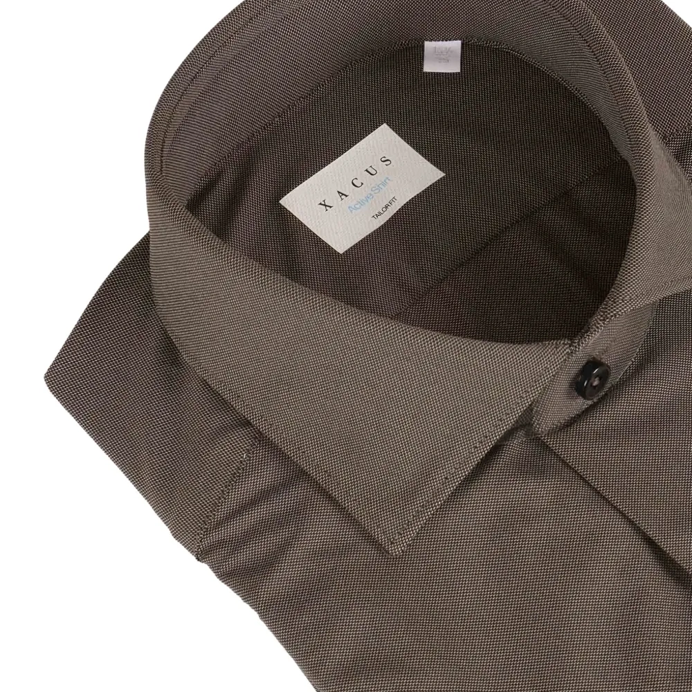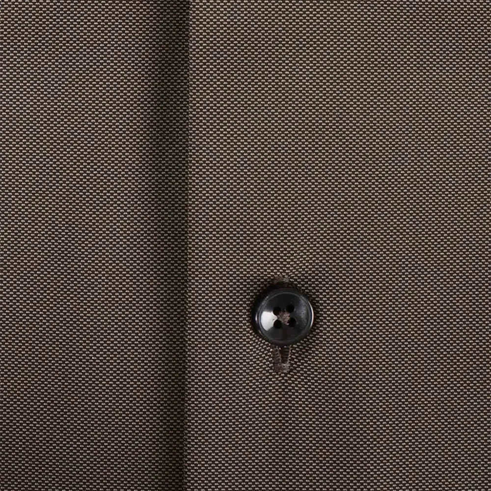 коричневая рубашка с застежкой на пуговицы, отложным воротником и длинными рукавами