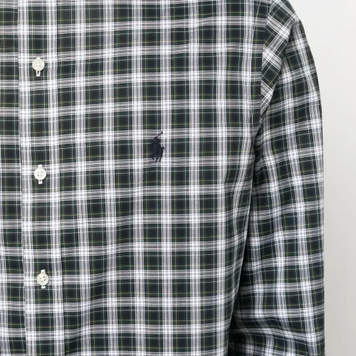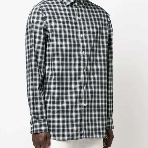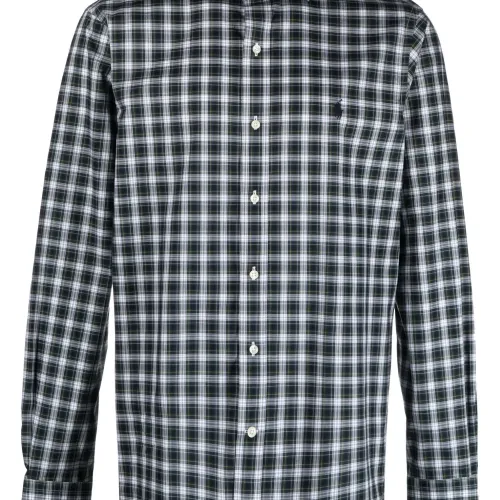 Темно-зеленый, хлопок, знаковый логотип Polo Pony, клетчатый узор, классический воротник, застежка на пуговицах спереди, длинные рукава, рукава с манжетами на пуговицах и прямой подол.