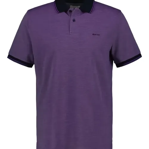 поло с застежкой на пуговицы, воротником и короткими рукавами, отделка по краям фиолетового цвета