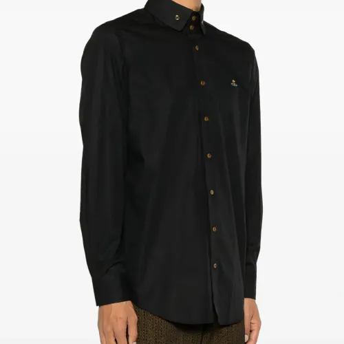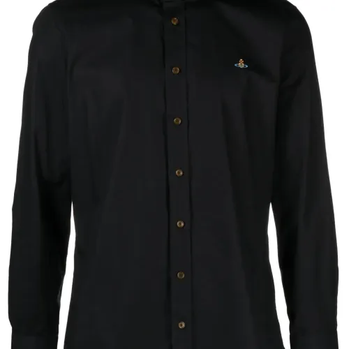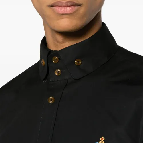 Черный, хлопок, поплин, вышитый логотип в форме державы, воротник на пуговицах, застежка на пуговицах спереди, длинные рукава, манжеты на пуговицах и закругленный подол. . Узнать больше о том, какие товары получают отметку «Ответственный выбор», можно из материала «Как мы оцениваем экологичность и этичность».