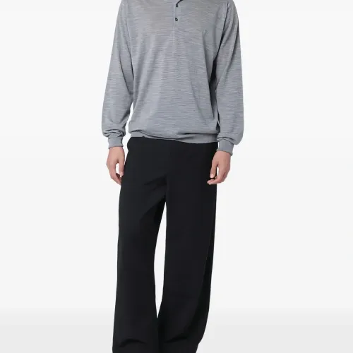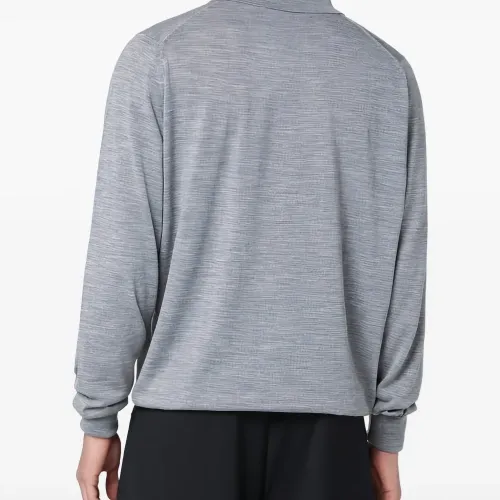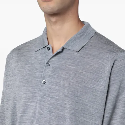 Серебристого оттенка шерстяное изделие на пуговицах с длинными рукавами и воротником поло