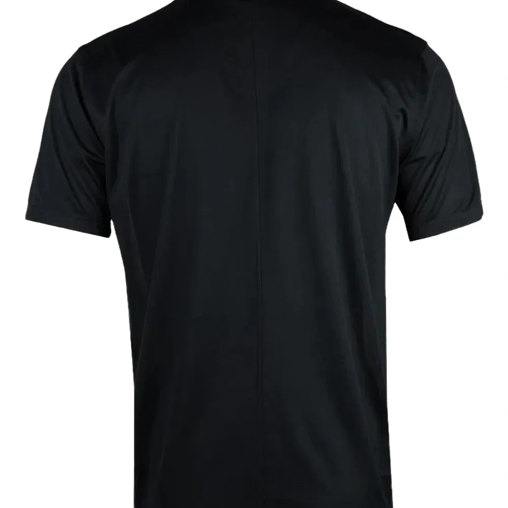 черно-белое поло с короткими рукавами, воротником и логотипом