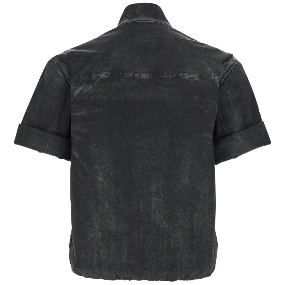 Джинсовая рубашка с высоким воротником