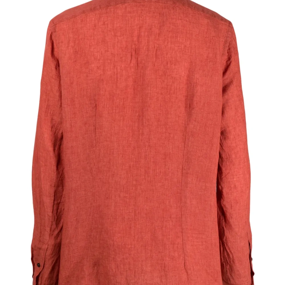Темно-оранжевый, лен, классический воротник, длинные рукава и застежка на пуговицах спереди. Этот товар как минимум на 50% состоит из материалов, которые признаны более безопасными для окружающей среды, и/или произведены с использованием методов, которые помогают сократить потребление воды и химических веществ. Узнать больше о том, какие товары получают отметку «Ответственный выбор», можно из материала «Как мы оцениваем экологичность и этичность».