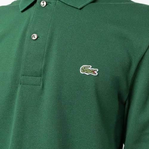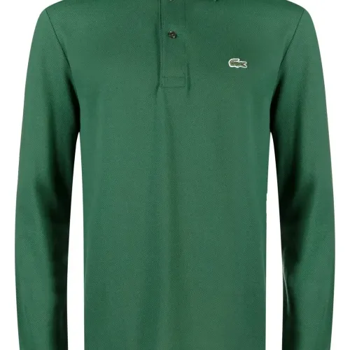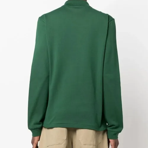 Зеленый, хлопок, ткань пике, нашивка с логотипом на груди, воротник поло, планка на пуговицах спереди, длинные рукава и прямой подол.