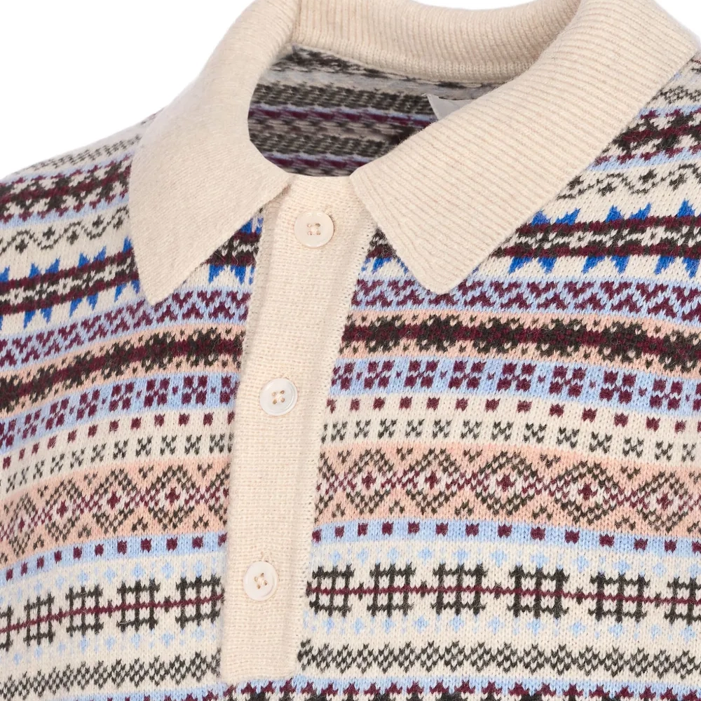 светло-бежевый смесь шерсти узор фэйр-айл длинные рукава поло воротник застежка на пуговицы спереди