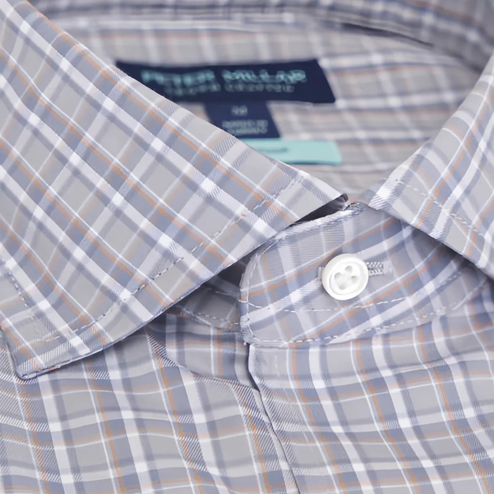 синий узор в клетку, воротник на пуговицах, застежка на пуговицы спереди, манжеты на пуговицах, длинные рукава
