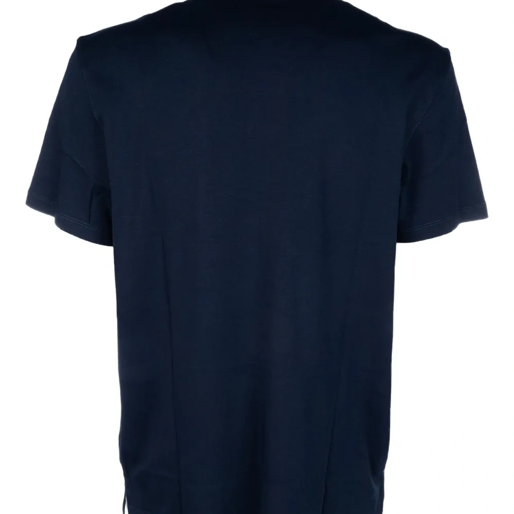 темно-сапфировое поло с вышитым логотипом, короткими рукавами, застежкой на пуговицы и воротником поло