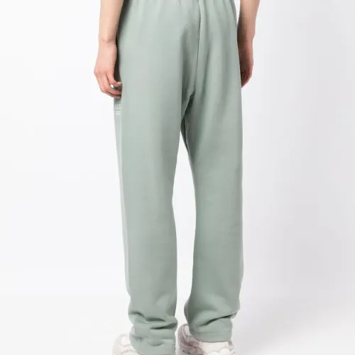 Сине-зеленый, смесовый хлопок, кулиска на талии, принт с логотипом, прямой крой и два прорезных кармана по бокам.