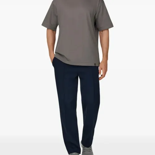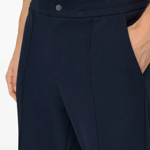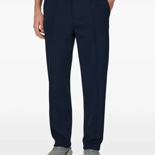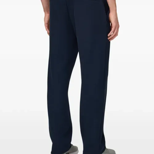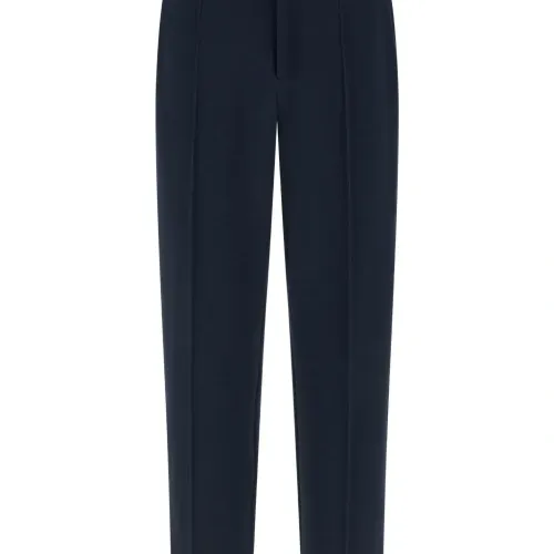 тёмно-синие передние карманы, задний прорезной карман, эластичный пояс, застёжка на пуговицу, отделка швами