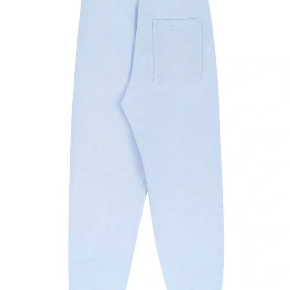 Нежно-голубой, хлопок, принт с логотипом, эластичный пояс, эластичные манжеты, два прорезных кармана по бокам и накладной карман сзади. Это унисекс-модель. Обратите внимание, что для нее используется мужская размерная сетка.