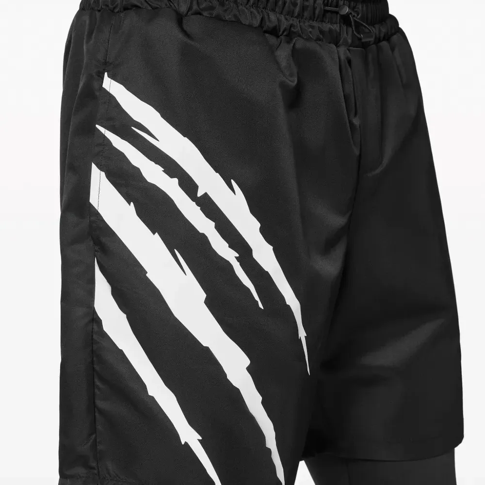 Черный, смесовый хлопок, принт с логотипом сзади, двухслойный материал, модель без застежки, эластичный пояс, кулиска, узкий облегающий крой и два прорезных кармана по бокам.